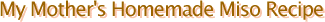 At one time, each family made its own miso, but that's unusual nowadays. My mother, too, had used store-bought miso. But then once a year, she started making homemade miso with her friends. My mother is very pleased, as her homemade miso has become popular with everyone who has tried it. I'd like to take this opportunity to tell you more about it.