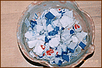 | 1. Wash the milk carton, and tear into pieces. Be careful not to tear the milk carton into too small pieces as this will make it difficult to remove the plastic covering. |