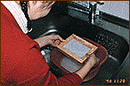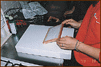 | 7. After that, remove the paper from the vat and gently place it on the drying board. Next, pat it with the towel to remove excess water. Be careful that airbubbles do not form in the paper. | ![]() |