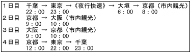 この電車は、東京を23:00くらいに出て、大垣に翌朝の6:00くらいに着きます。そこから 普 通列車で2時間ほど揺られて、京都に着きました。その日は1日かけて京都の町をまわりました。京都は、古い町並みがまだ残っている都市で、外国人観光客に大変人気があります。しかし日本人にとっても、やはり京都は心落ち着く特別な場所です。