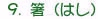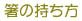 右手で箸の中程を持ち、それを胸の前においてください。 | ![]() |