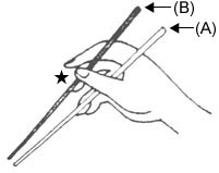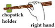 Take the middle of both chopsticks with your right hand and hold them in front of your chest. | ![]() |