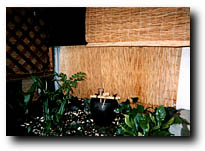 ![]() These blinds are made by lining up bamboo or reeds and tying them together with string. They are hung between rooms or as shades indoors or outdoors to keep the sunlight out. |