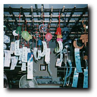 ![]() Wind chimes are hung outside on balconies and porches, making a pleasant sound as they ring in the breeze. Wind chimes are made of clay, glass, bamboo or iron. |