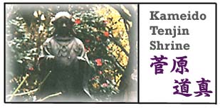 菅原道真(845年6月25日〜903年2月25日)は、亀戸天神と九州太宰府天満宮の祭紳です。他にも、例えば、湯島天神などの、「〜天神」と名の付くところはすべて菅原道真をまつっているところです。彼は、平安時代(794〜1192年)初期の政治家であり、文人であり、そして学者でもありました。若い頃から、学問、文才に優れていて、とても有能な政治家でしたが、その才能を妬んだ人々の策略によって、太宰府に左遷され、その後、生きて京都の土を踏むことなく、太宰府で亡くなりました。 道真の亡くなった後、人々は彼を神様として崇めるようになり、現在では、学問の神様として、多くの人の信仰を集めています。彼を祭る亀戸天神は、梅の香匂う初春には、合格祈願の受験生で賑わいます。 |