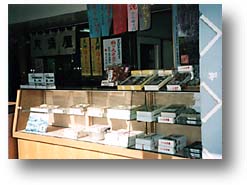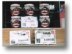 The most famous souvenir from Kameido is "kuzu-mochi" made from kuzu flour. There are other things like "Gokakuume" which is named after the plums Michizane loved, or "Tenjinmanju" which is also named after him. The merchants of the Kameido Shrine area are not only religious but also very shrewd in their business dealings. |