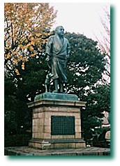 今日の散歩の締めくくりは、イヌを連れた西郷隆盛像。西郷さんも散歩中?