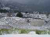 節子の旅」はギリシャに向けて飛び立った。 カモミールの花が太陽の光をうけて一面に咲いている姿はまるで白い絨毯。ここオリンピアの遺跡にある競技場に入ると、中の直線コースを見学にきていた学生たちが、丁度横並びになって一斉に走っているところだった。それを見てグループの中でも特にチャレンジ精神旺盛な香川さん、永田さん、山田さん、岩井さん、尾見さんが学生たちの後に続いて走りだした。そして、見事完走!我々の拍手に混じって、観覧席からゼウスとヘラの拍手が聞こえてきそうなどのどかな競技場だった。 寒い寒いと思って朝目覚めたら、外は雪。嬉しい驚きだった。 天まで届けとばかりに高い高い奇岩の頂上に建てられた、ビザンチン時代のギリシャ正教の修道院。青い空を背景に、正に“空中に浮かぶ修道院”だった。教会の中は私が今まで見慣れてきた西欧の教会とはまるで違っていた。正面に仕切りがあり、そこには聖母、キリスト、聖者のイコンが掲げられてあって、祭壇はその奥にあり目にすることができなかった。僧だけが閉ざされている入り口から入って祭壇の前に進むことがでる、というのだから荘重な雰囲気の中にも興味ひかれる教会の内部だった。女性たちが見学の時に借りてはいたズボンの上からのスカート姿、我々は愉快な格好になってしまったが、さすが若者たち、ニューモードのように格好よく着こなしていた。 クレタ島は旅行中ずっと穏やかな天候だった。エーゲ海の中で最大の島、高い山々は雪を頂き、至る所に出没する羊たち、行く先々で目に飛び込んでくるオリーブの木とぶどう畑、たわわに実ったオレンジと黄色いレモン、アーモンド、ミモザ、エニシダ、ポピー、野菊、もう数え上げたら限が無いほどの花が色とりどりに咲き乱れ、おいしい食べ物とお酒があって、人々は親しみやすく素顔に出会える島。日本で頻りに言われている“Slow life”がぴったりの島だった。 その昔、奥深い地下室にミノタウロスという怪獣が閉じ込められていたという神話伝説があるクノッソス宮殿跡。我々が訪れた時には中庭に面した中央階段の下にネコの親子が住み着いていた。ネコたちは大切にされているらしく、綺麗な毛並みをしていた。また、見学に来ていた現地の小学生たちが“こんにちは”と彼等の方から挨拶をしてくれたのにはとても感激した。初めは日本人かな?と不安そうな感じだったが、“こんにちは”と挨拶を返すと、やったー!と、いうようにほかの子たちからも“こんにちは”の挨拶と共に素晴らしい顔かえってきた。 伝統村アロリストでは料理作りにも参加し、その後食事とハウスワインを頂きながら音楽とダンスを楽しんだ。帰る頃には、夢中で捏ねたパンもふっくらと焼きあがっていて、お腹も心も満足して、気持ちはすでにクレタ人!になっていた。クレタは野菜、魚介類、肉などが新鮮で、オリーブオイルとレモンをふんだんに使う。土地の人たちは新鮮な大きなレモンを二つ切りにして、フォークを差込みぐるりと回してギュッと絞り、バシャバシャと料理にかけて食べていた。 ハニアでのホテルはヴェネチア時代の城砦や城壁が残っているヴェネチアン・ポートにあった。その日グループの方々はサマリア渓谷へ。私は一人で穏やかな佇まいの旧市街をぶらぶら散策し、海を眺めてぼけーとした1日を過ごした。夕暮れ時、山際さんとカフェでグリーク・カッフィを飲んでいたら、ハニアの青年に漢字を教えてほしいと頼まれた。愛、平和、・・我々の家族の名前から何と十二支まで。彼の名前のジョンを漢字で書いて、といわれたのには困ってしまった。青年の大好きな漢字は 龍 だった。 アテネでの帰国前日、グループの方々はエーゲ海クルーズへ。私は14年前に訪れているので今回はパスして、アテネ市内を一人のんびりと見物することにした。古代の遺跡と近代的な建物が混在している街中を歩いていると、確かに新しいビルは増えていたが、建て方一つにしても、自分たちの古代の歴史を大切に守ろうとしているギリシャ人の思いが伝わってくるようだった。 歴史、文化、音楽、生活、風景、どれを採っても現在と過去が交錯するギリシャの旅は、知識豊富な現地ガイドさんの解説、渡辺さんの細やかな通訳、好奇心をそそられる行程などから、実際に訪れてみなければ分からない旅の面白さをたっぷりと味わうことができた。 また、気になっていたイラク戦争の影響は特になかったものの、“戦争反対”の集会やデモ行進が各地で行われているとの話は耳にした。事実、イラクリオンでは、広場に作られた舞台上で民族楽器を奏でながら反戦歌を歌っていたしそこに集まっていた子供から大人まで、大勢の人たちが戦争反対の小旗とキャンドルを両手に持っていたのも目にした。この後彼らはデモ行進するとのことだったが、警備にあたっていた多くの警察官はこの様子を静かに見守っていた。痛みを伴う戦争に対する人々の思い