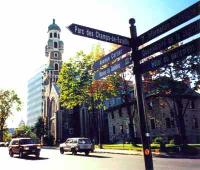 | ある時から、とても紅葉が見たくなりました。 どうせなら、カナダの真っ赤な紅葉を見たい! そしてミレニアムで浮き立つ1999年10月3日より10日までの待望の「カナダ紅葉紀行」となりました。 振り出しはケベックです。ケベックはフランスの植民地であった為にフランス語が話されて居るとのこで、町の標識もフランス語です。まるでフランスに来たような気分です。美しくしっとりとした町並み、優雅な家、そしてあちこちに紅く色づいたメープルトゥリーとの対面です。 |