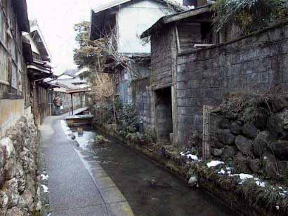 | この水は一体どこに流れて行くのだろう。そう思って跡をつけると、郡上八幡の町をどうどう巡りする羽目になりました。何しろいたる所に水路が張り巡らされていて、そのどれもが同じくらい澄みきった水をたたえているのです。広めの水路には、散歩におあつらえ向きの小道もついています。きれいな石やタイルが敷きつめられた道もいいのですが、コンクリートの割れ目から雑草がのぞいているような道からも、土地の雰囲気がほのかに伝わってきます。そして歩いている間中、水の笑い声がころりころりと耳の裏をくすぐるのでした。民宿のおばさんに夕食を注文しておいたので、夜は早めに食堂に戻ったのですが、障子の向こうではまだ水が笑っています。もう一度散歩に出かけたくなって、時々箸が止まりました。 | |