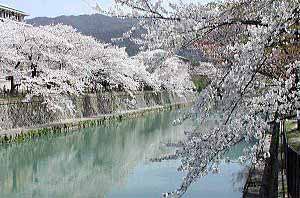 寺の塀に沿って直進しますと、大きな楠でも有名な青蓮院門跡に至ります。この寺は粟田御殿とも呼ばれ庭園は明るく、霧島ツツジの咲く頃は最高と言われています。今は有料ですが、友達が近くにおりました関係から、若い頃は境内が私共の遊び場でした。 ここから少し北へ行くと、三条通を経て神宮道と呼ばれる平安神宮に続く広い道になります。大鳥居をくぐった突き当りが神宮で、この付近一帯は岡崎公園と呼ばれ、国立近代美術館、市立美術館、図書館、動物園、琵琶湖疎水記念館などがあります。 私どもは、ここでこの日の散歩をうち切りましたが、ここから南禅寺、永観堂、哲学の道、真如堂、金戒光明寺、銀閣寺等へ続く道は素晴しく、桜、紅葉は勿論四季を問わず楽しめます。この日の所要時間は数時間でした。 |