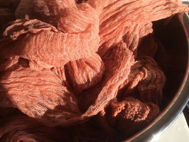 木綿ストール、すっかり乾き、なんとも味わい深い色に染め上がりました。