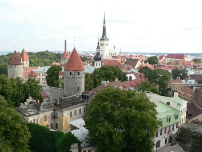 翌日徒歩でタリンの街を見物。現在国会議事堂の美しいピンクのトーンペア城にはのっぽのヘルマン塔があるが、4 - 50年間国旗を掲揚できなかったそうだが、現在はエストニアの青、黒、白の国旗がはためいていた。広場の向かい側には帝政ロシアが建てたアレクサンドル・ネフスキー聖堂がある。