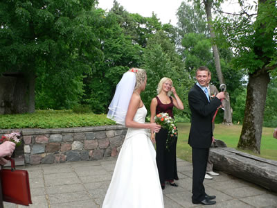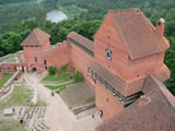 神の庭を意味する赤レンガ造りのトラカイダ城を見物。トラカイダのバラといわれた美女(恋人への愛を貫くため死をえらんだ)の墓に結婚式を終えたばかりのカップルがお参りにきていた。