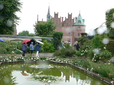 北欧一美しいといわれる水上の城郭イーエスコウ城を訪れた。湖の中に杭を打ち込んで建てたこの城は渇水すると危険なので、そのような時には他から水を運んだそうである。よく手入れされた幾何学的な庭園も美しかった。