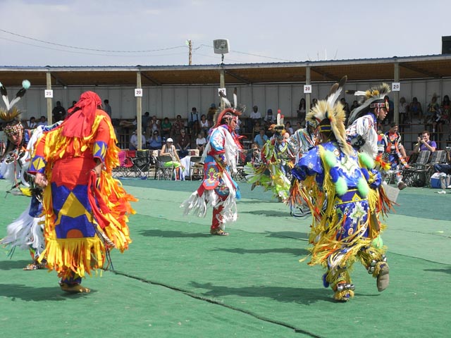先祖が鷹であったというブラックフィートインディアンの居留地を訪問。年に一度の北アメリカインディアン大集合の祭りPOWWOWを見学。正装でのパレード、強烈なリズムの群舞、それにはじめてみるロデオの迫力、猛り立つ馬から振り落とされるカウボーイに思わず興奮しました。それにしてもこれほどの盛大な祭によそからの見物人は我々日本人だけ。酋長と宗教的指導者のティピー(円錐形のインディアンの家)を訪れて話しを聞けたのも、得難い貴重な思い出です。
