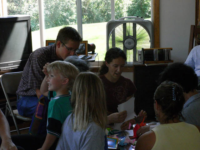 m, 80km)を名物レッドバスでドライブしたり、変化に富んだ旅の最終日は、現地のドイツ・スコットランド系のカソリック家庭(両親と3男2女)を訪問しました。3人の息子達がドライバーガイドを務めてくれ、2人の娘達手作りのいちごのパイをごちそうになりました。近隣の人など交えて総勢30人、日本みやげ(うちわ、扇子、手拭い、風呂敷など)を渡したり、将棋や折り紙を教えたり、持参の茶器で日本茶を供したりと、言葉は通じなくとも日本文化の一端を紹介できた楽しく、有意義な親睦会になりました。故郷を合唱してお別れしました。