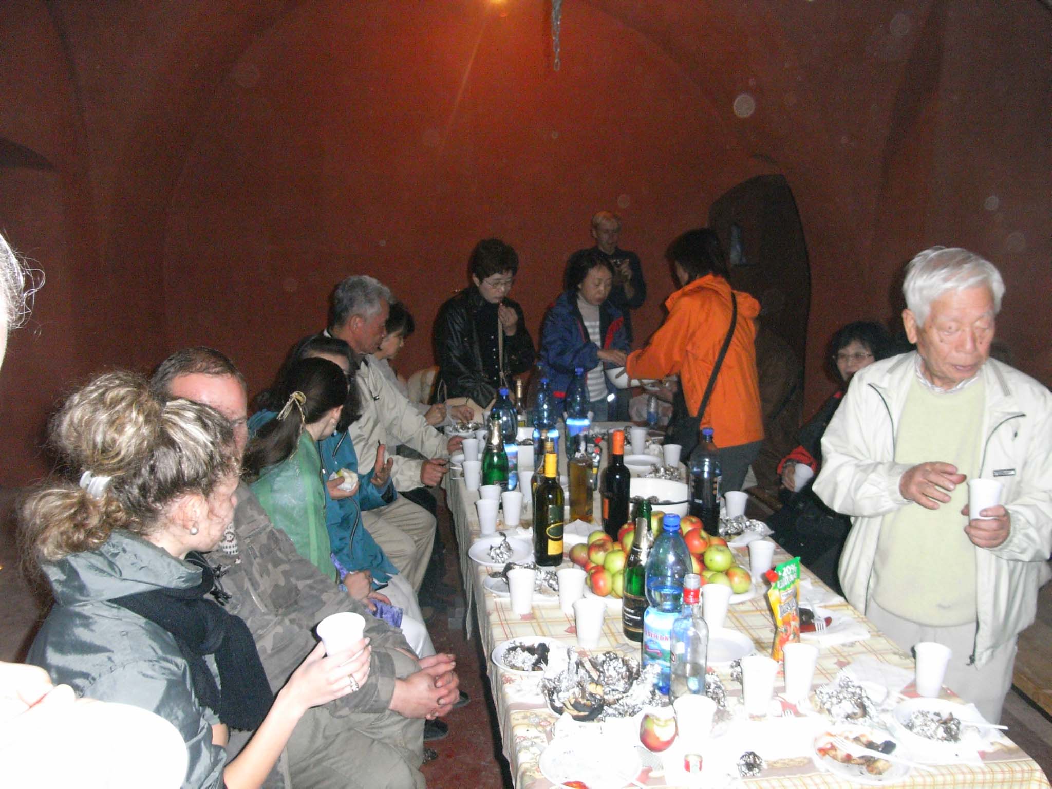 もう一つは全くおまけの会だった。チェナディエボ(ザカルパチアのハンガリーとの国境近い町)の民宿の当主のアイディアか、夜の食事に行った古城では城修復の関係者達が待ち構えていて、延々とこの城の歴史と現在この城で行っているプロジェクトの話を聞かせてくれた。待ちに待った夕食会で、アルミホイルで包んで焼いたポテト、ソーセージ、小さなりんご、そしてワイン。言葉は全くわからないのに、なぜか賑やかな夕食だった。すきっ腹にやや堪えた夕食をいただいた。日本はつくづく飽食だと感じさせられた。