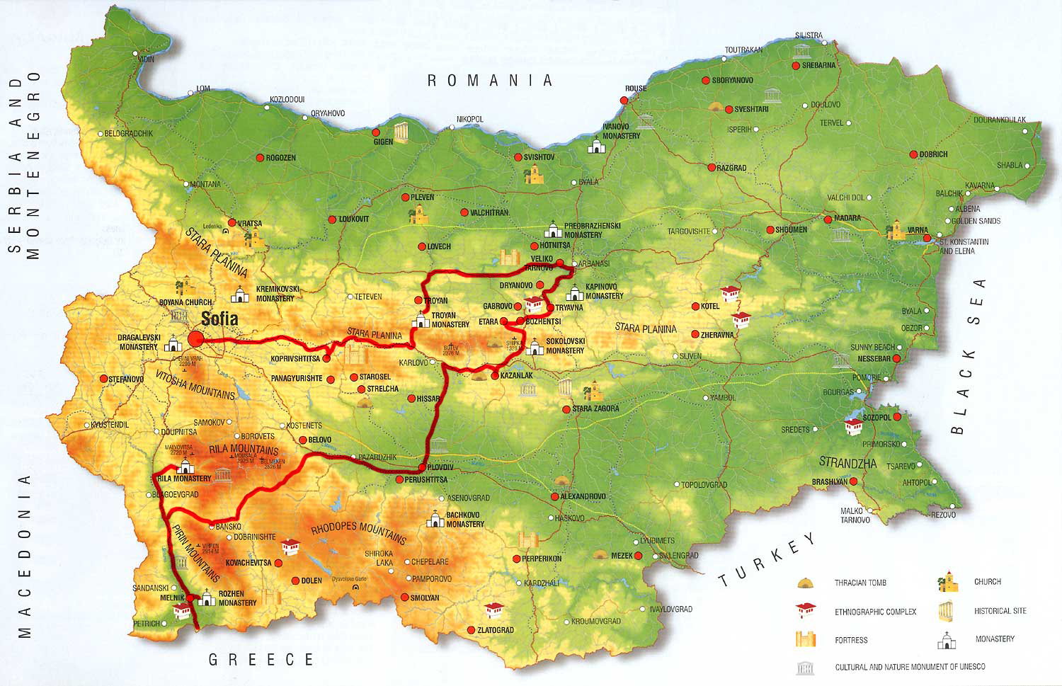 *6つの【世界遺産】:テサロニキの初期キリスト教とビザンチン様式の建造物群3BC/古代マケドニア王国の首都ヴェルギナ11-3BC/トラキア古墳壁画5BC/リラの僧院10AD/ボヤナ教会10AD/ピリン国立公園