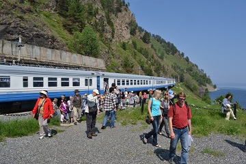 ご一緒させていただいたお仲間達とイルクーツクへのシベリア環状鉄道の中等で、